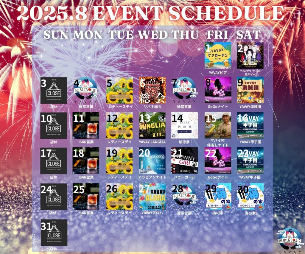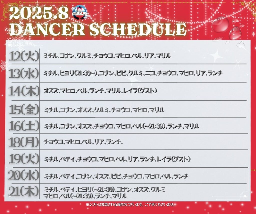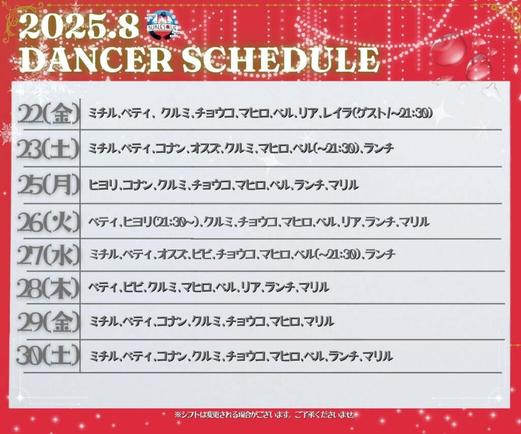 8月スケジュール(キャスト/イベント)